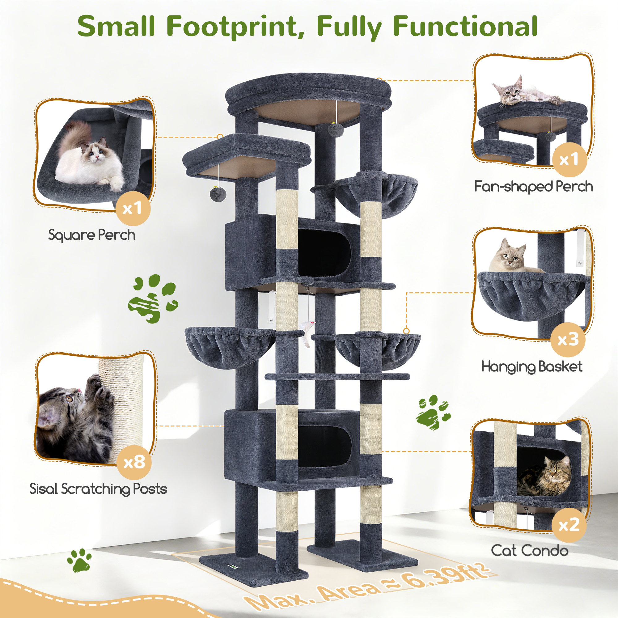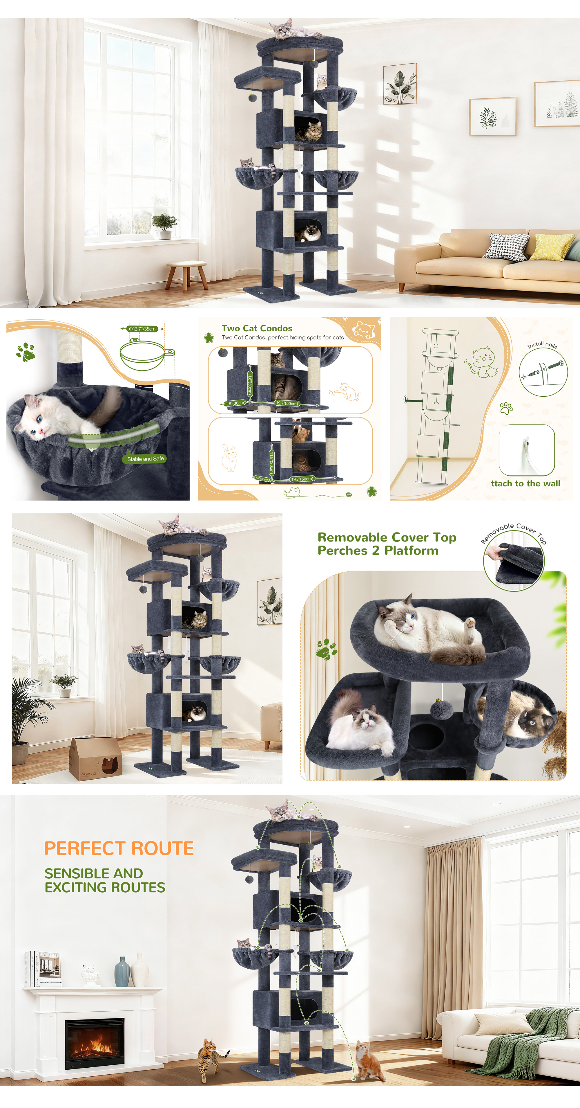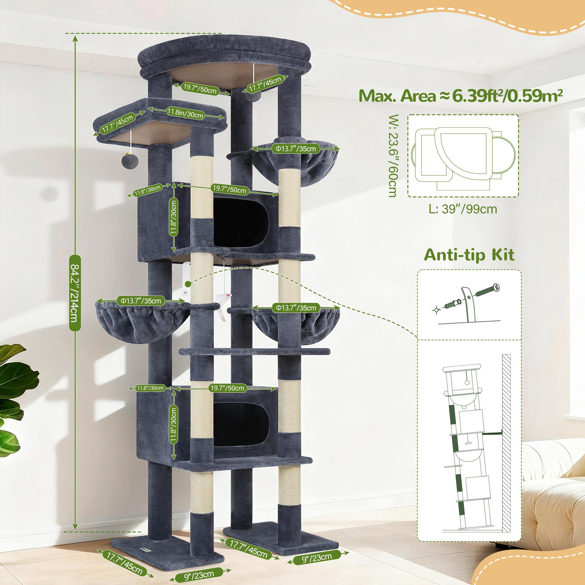 F84 Big Cat Tree(Dark Gray,84-inch)